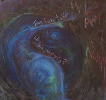 I began with two people who expressed themselves through tears: Peter and Mary of Magdala. First came a painting of Peter's distraught face as he realized the full impact of his denial of Jesus. Then the tears of Mary of Magdala when she was left on her own outside the empty tomb...